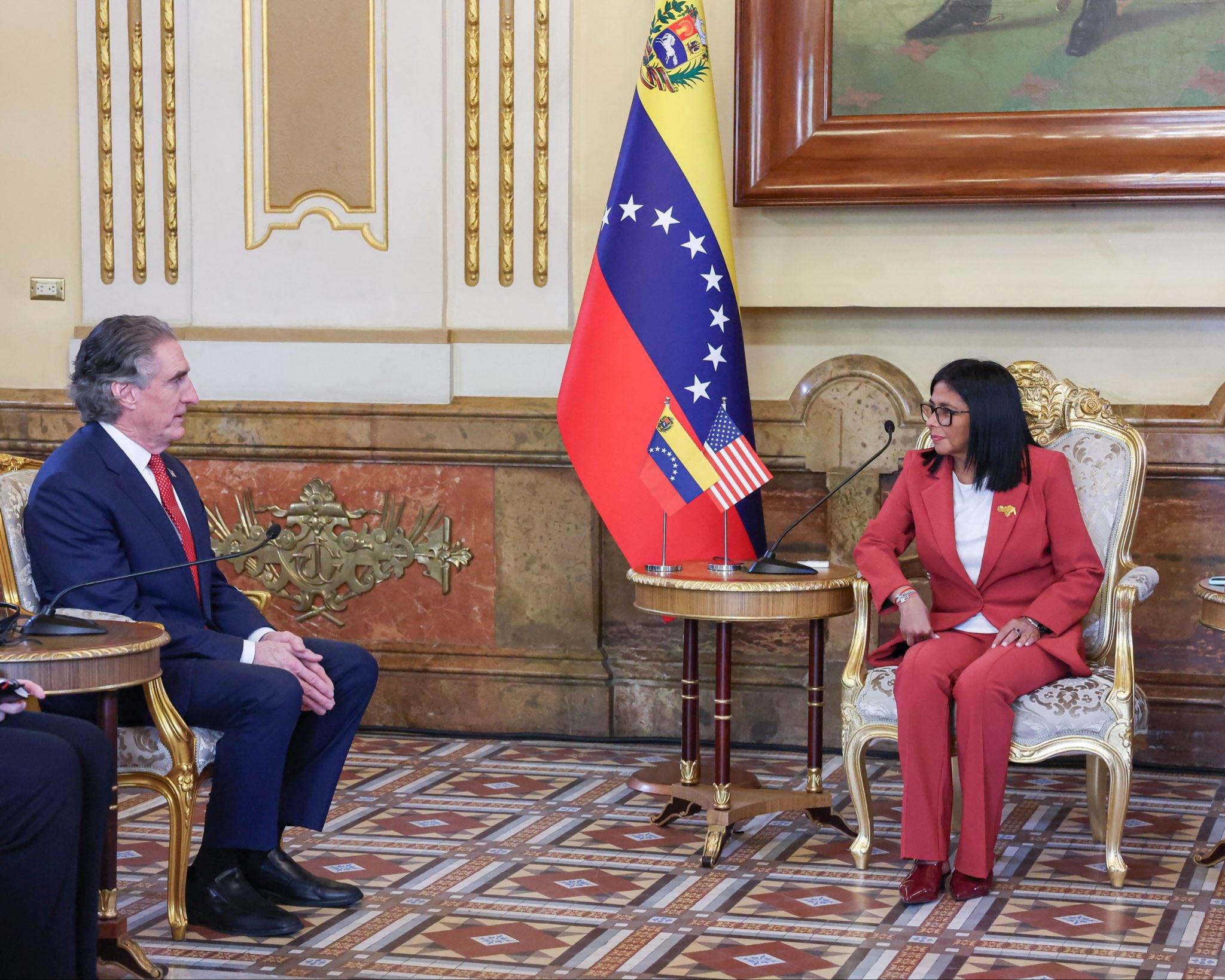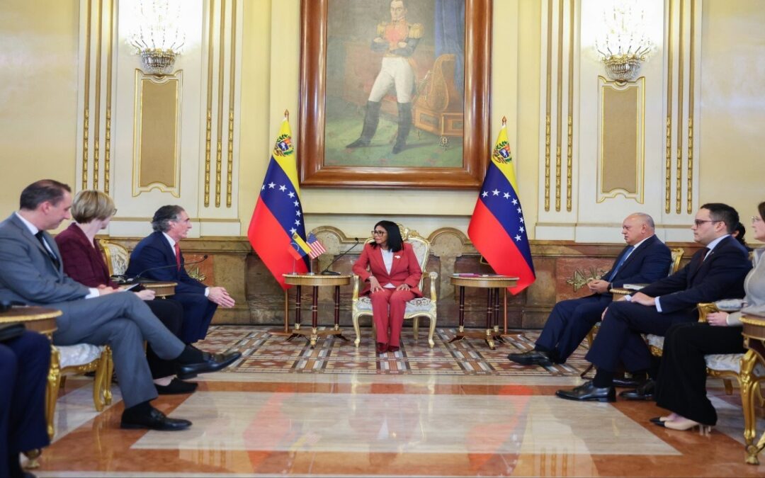 La presidenta encargada de la República, Delcy Rodríguez, recibió este miércoles en el Palacio de Miraflores al secretario de Interior de Estados Unidos, Doug Burgum, para abordar temas de interés en la cooperación energética y fortalecer el sector minero.