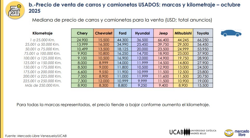 Así lo evidencia un informe de la Universidad Católica Andrés Bello (UCAB) y la empresa de comercio electrónico Mercado Libre Venezuela, basado en los anuncios que estuvieron activos en la plataforma web de esta compañía durante octubre de 2025.