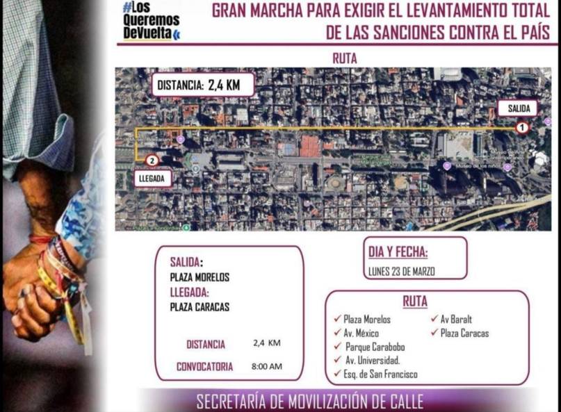 El Partido Socialista Unido de Venezuela se moviliza este lunes por las calles de Caracas para solicitar el levantamiento total de las sanciones.