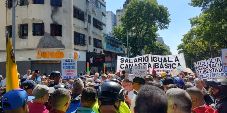 Cientos de trabajadores, jubilados y pensionados salieron este lunes a las calles de Caracas para exigir al gobierno un aumento de sueldos y pensiones que les permita enfrentar la inflación y cubrir necesidades básicas, en medio de una prolongada crisis económica que ha erosionado el poder adquisitivo de los salarios.